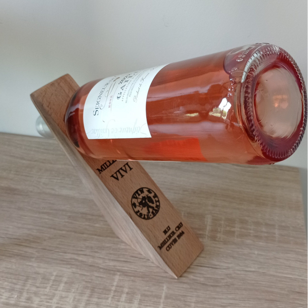 Ajoutez une touche d'élégance et de sophistication à votre intérieur avec notre Porte-bouteille. Fabriqué en bois de haute qualité, cet objet décoratif unique est conçu pour accueillir votre bouteille de vin préférée dans une position défiant la gravité, créant ainsi une présentation visuellement époustouflante. Son design élégant et moderne s'harmonisera avec tous les intérieurs et sera parfait pour votre cuisine ou votre salle à manger. Que vous souhaitiez mettre en valeur une bouteille de vin spéciale ou simplement ajouter une touche d'originalité à votre intérieur, notre Porte-bouteille impressionnera vos invités et rehaussera l'ambiance de n'importe quelle pièce.